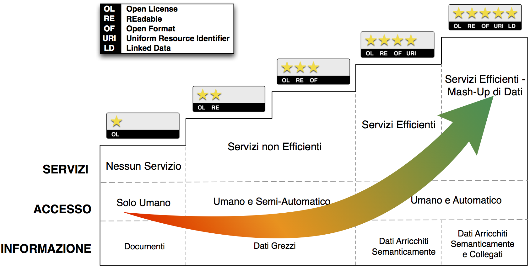 Fig. 2 Figura 2: Modello a cinque stelle per i dati aperti - rivisitazione della figura nota e disponibile sul Web