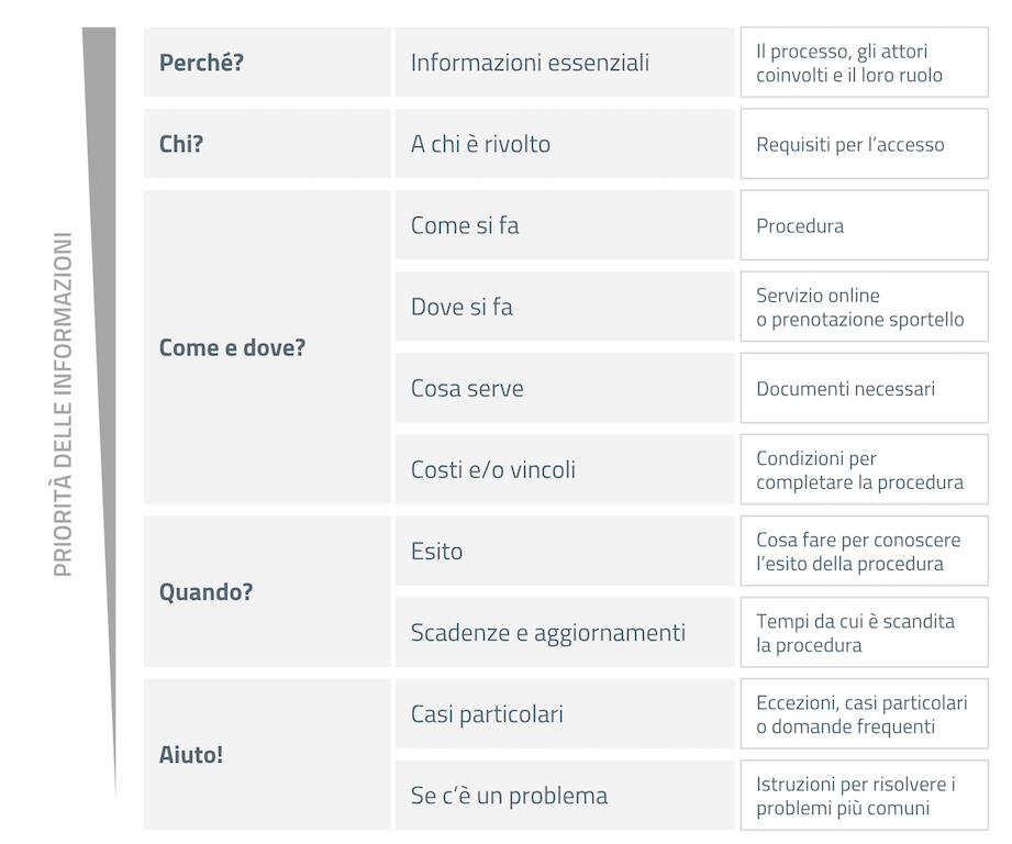 La descrizione delle procedure ha una struttura a piramide inversa, che permette agli utenti di capire il contenuto anche con una lettura superficiale, e li guida nella scoperta dei particolari rilevanti per loro.